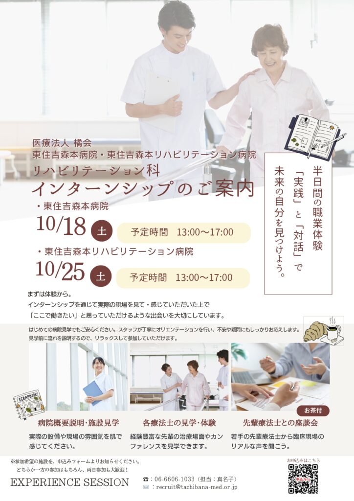 東住吉森本リハビリテーション病院および東住吉森本病院のリハビリテーション科でインターンシップを開催いたします。